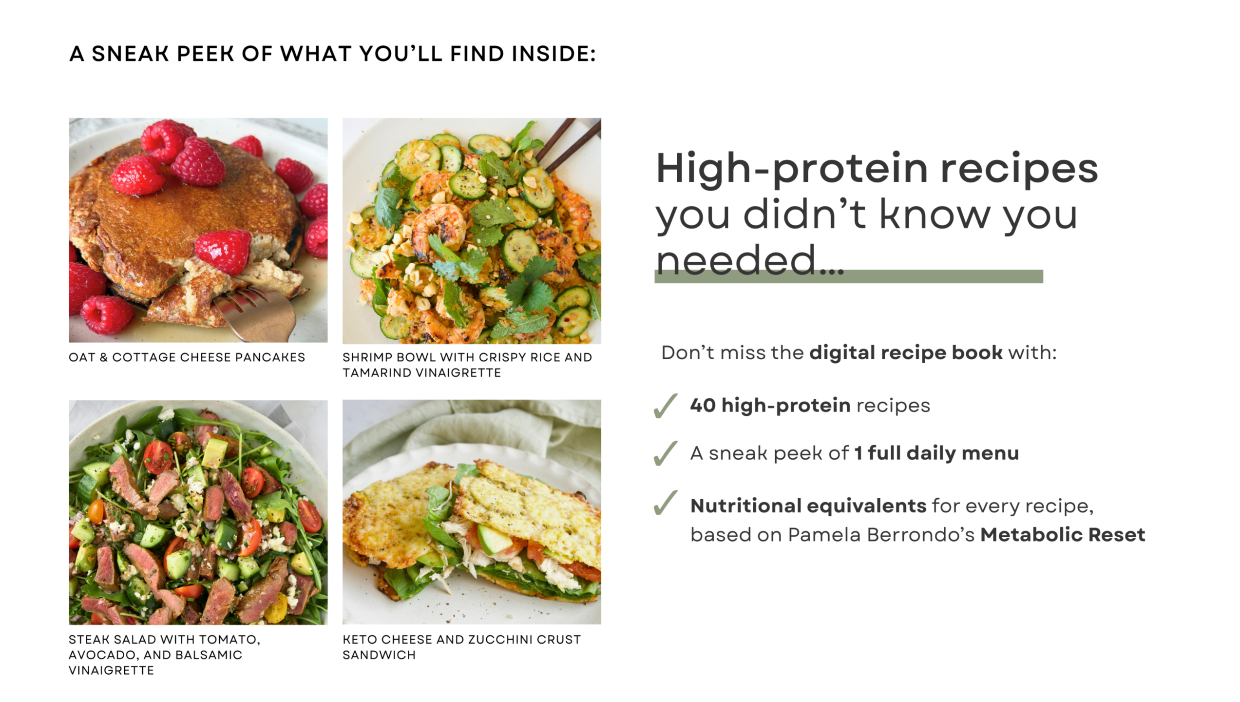 Digital recipe book with over 40 high-protein recipes.