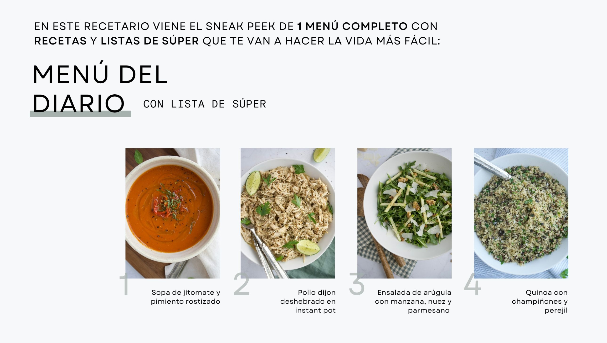 • 5 menús del diario balanceados, con recetas y lista de súper